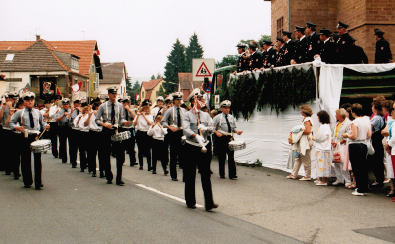 Feuerwehrumzug im Jahre 1988 in Fürth an der Ehrentribüne.